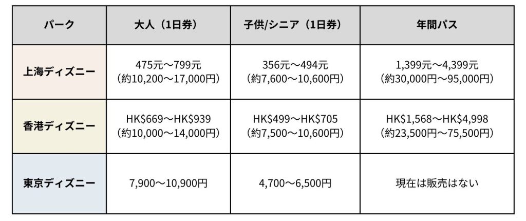 本記事では、上海&香港ディズニーのチケット料金、パークの規模、アトラクション、特集キャラクター、評判、限定グッズや食事などを詳しく比較し、「東京ディズニーと比べてどう違うのか?」を解説します!