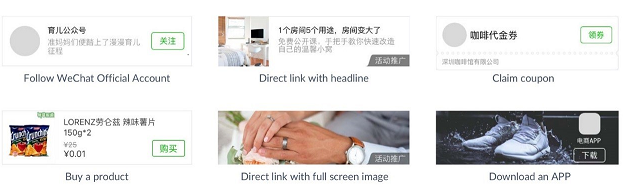 現在、どんなタイプのアカウントでも公式アカウント広告の使用が可能で、微信(WeChat/ウィチャット)もーメンツ広告(WeChat Moment ads)のように業種の制限はありません。